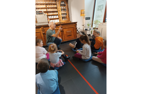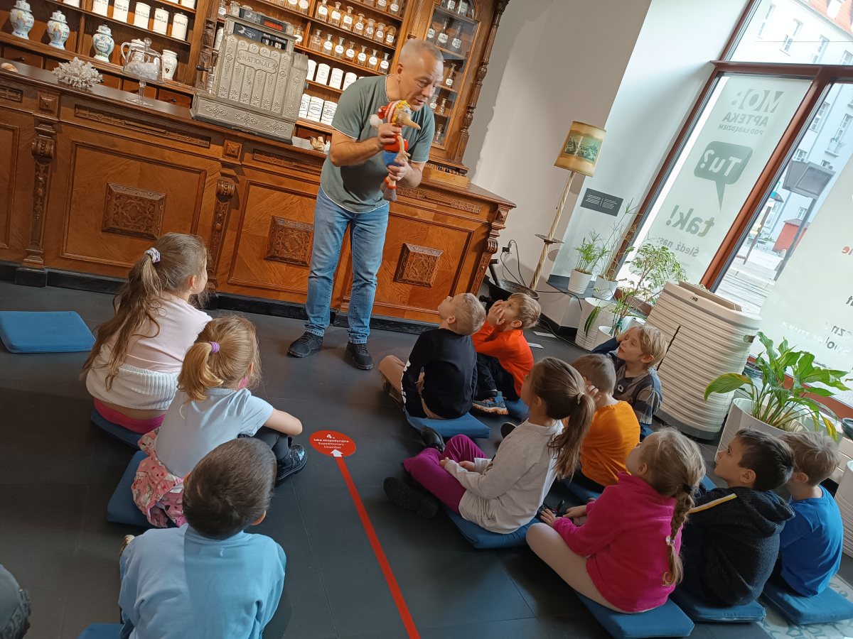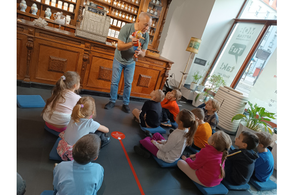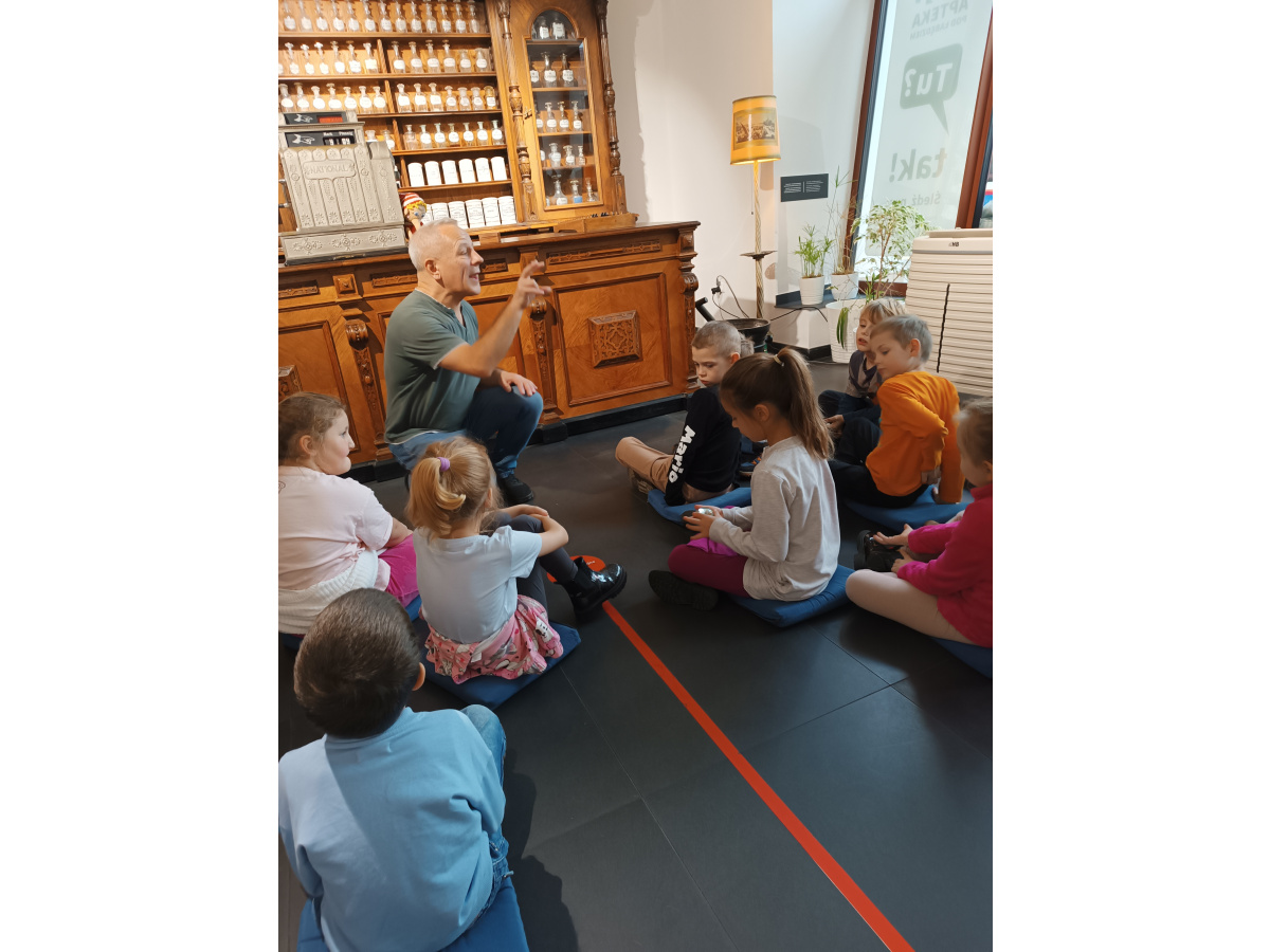 "Krasnale" uczestniczyły w pasjonującej wycieczce do "Apteki pod Łabędziem". Wysłuchanie opowieści o dawnych czasach, podziwianie unikatowych eksponatów, a nawet poznanie liter: "a" i "z", jednak tych sprzed 5000 lat p.n.e. - to, między innymi, atrakcje wyprawy przedszkolaków. Były też warsztaty, podczas których dzieci tworzyły własne skarby / eksponaty. Dodatkową przyjemność sprawił dzieciom spacer i oglądanie pieknych miejsc ukochanego miasta - Bydgoszczy.