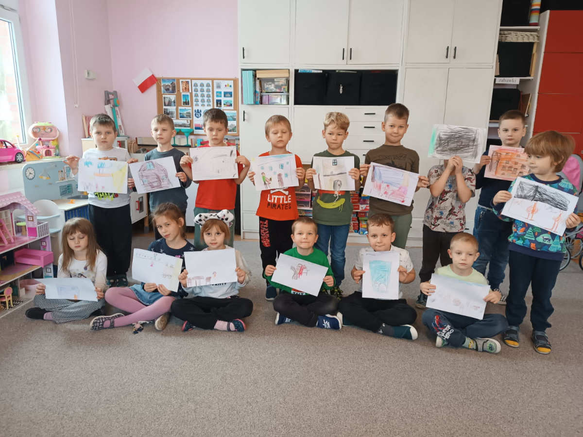 Przedszkolaki po zapoznaniu się z kolejną bydgoską legendą przygotowały ilustracje, inspirowane jej treścią.