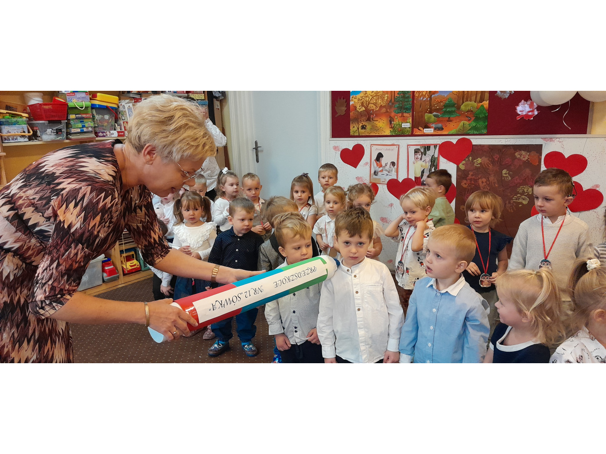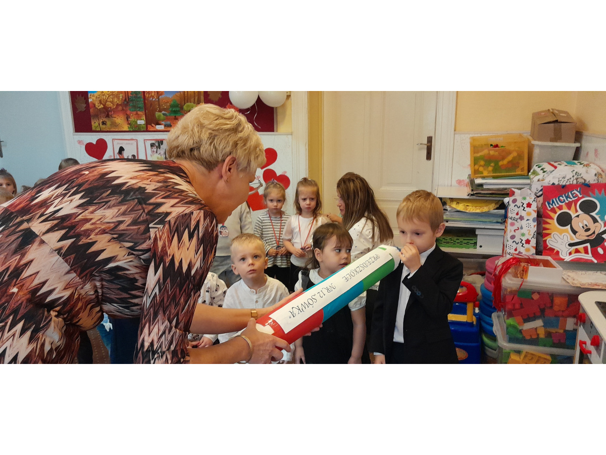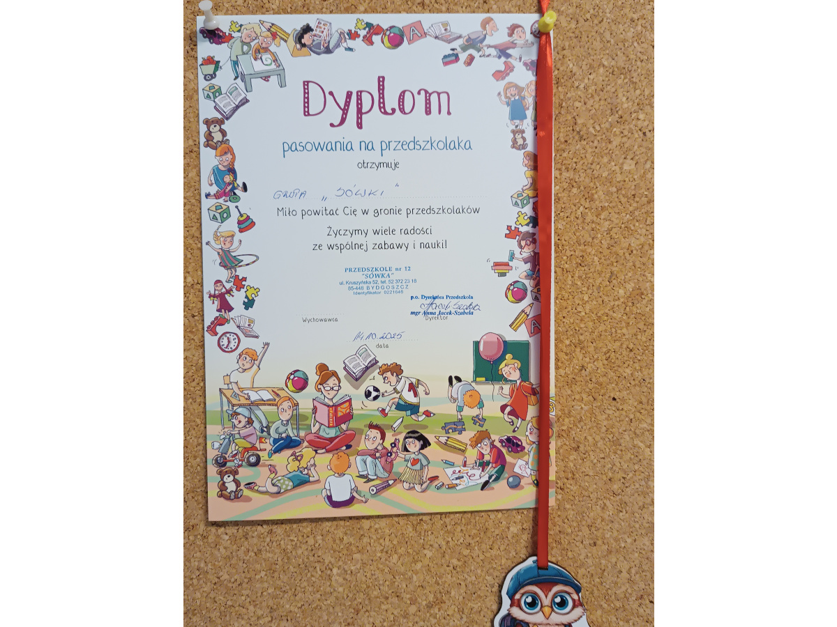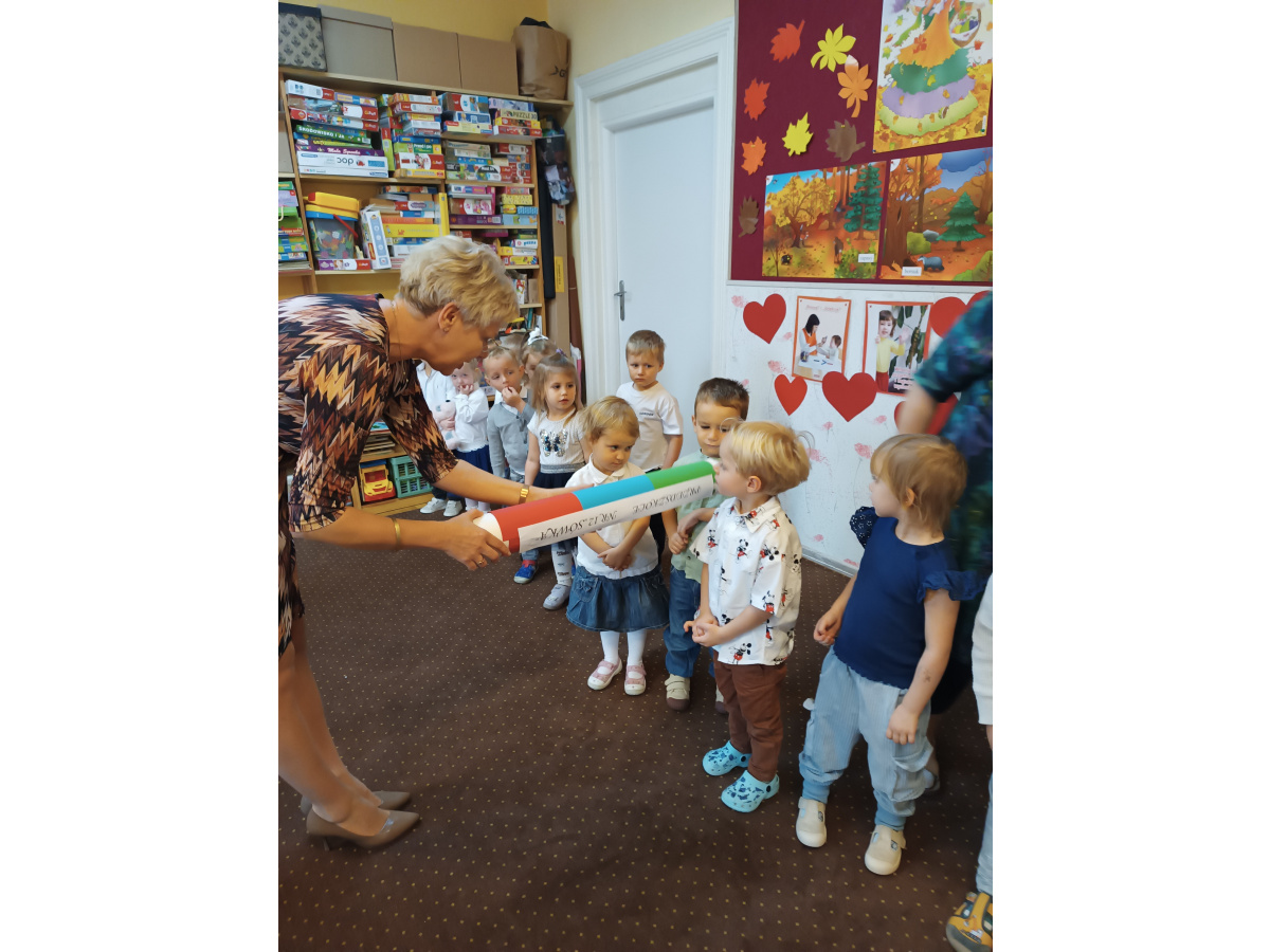 Dnia 14 października 2025 roku, w naszym przedszkolu, odbyło się uroczyste Pasowanie na Przedszkolaka. Po części artystycznej, na której nowoprzyjęte trzylatkii z grupy Promyczki i Sówki przygotowały piosenkę i wiersz, nastąpił ten wyjątkowy jakże piękny moment, pasowanie. Zaszczyciła nas swoją obecnością pani dyrektor Anna Jacek- Szabela, która dotykając ramienia każdego malucha czarodziejską kredką, pasowała go na Sówkowego przedszkolaka. Na pamiątkę tego wydarzenia, każdy maluch otrzymał pamiątkowy dyplom i drobny upominek. Gratulujemy naszym wspaniałym przedszkolakom! Cieszymy się, że jesteście z nami:)))
