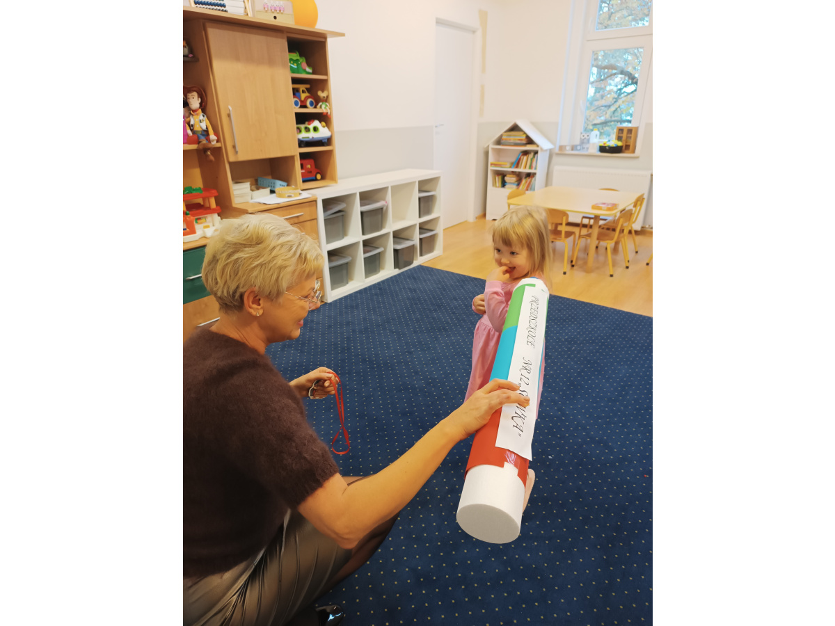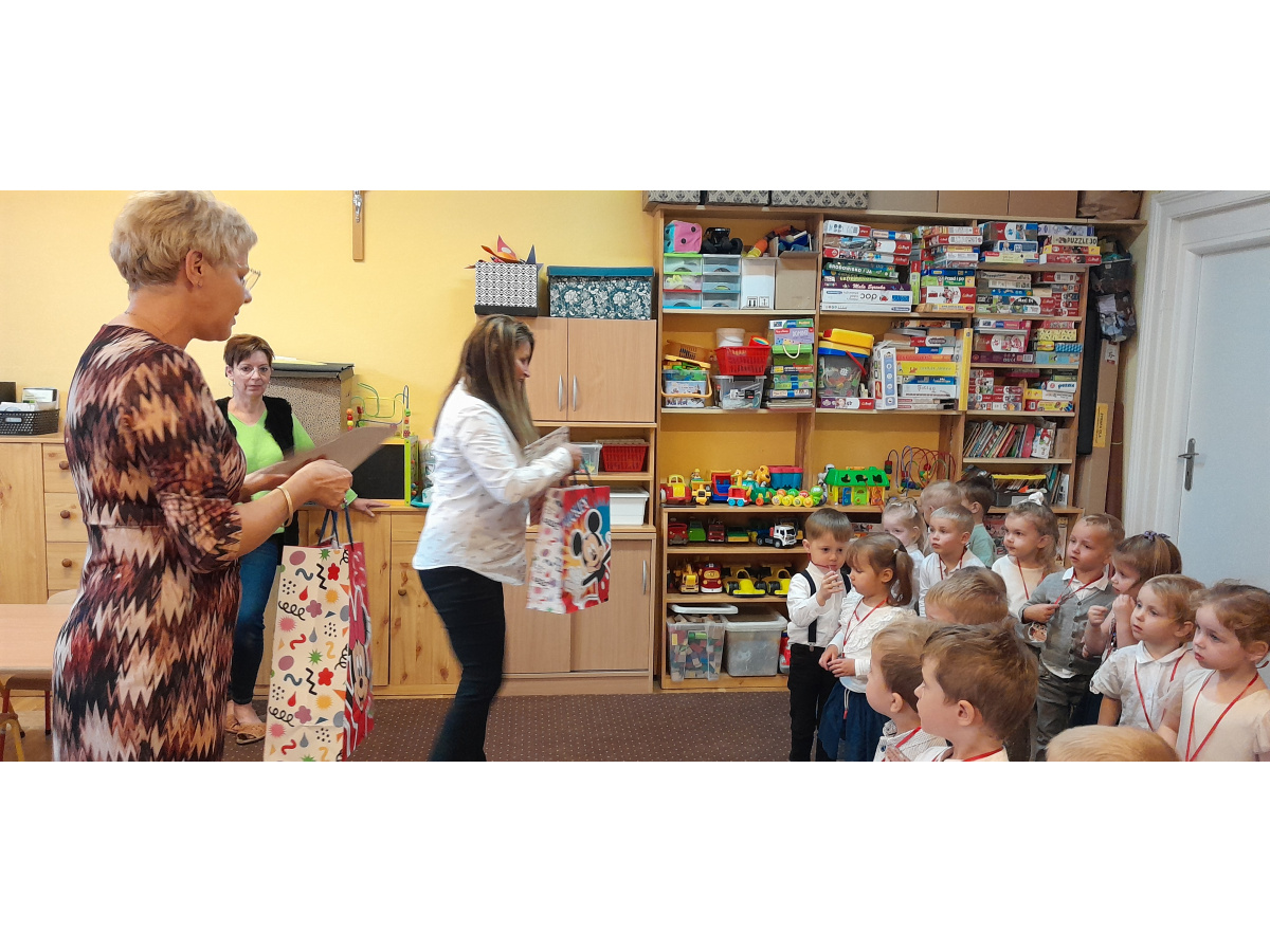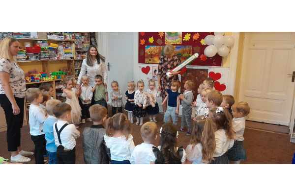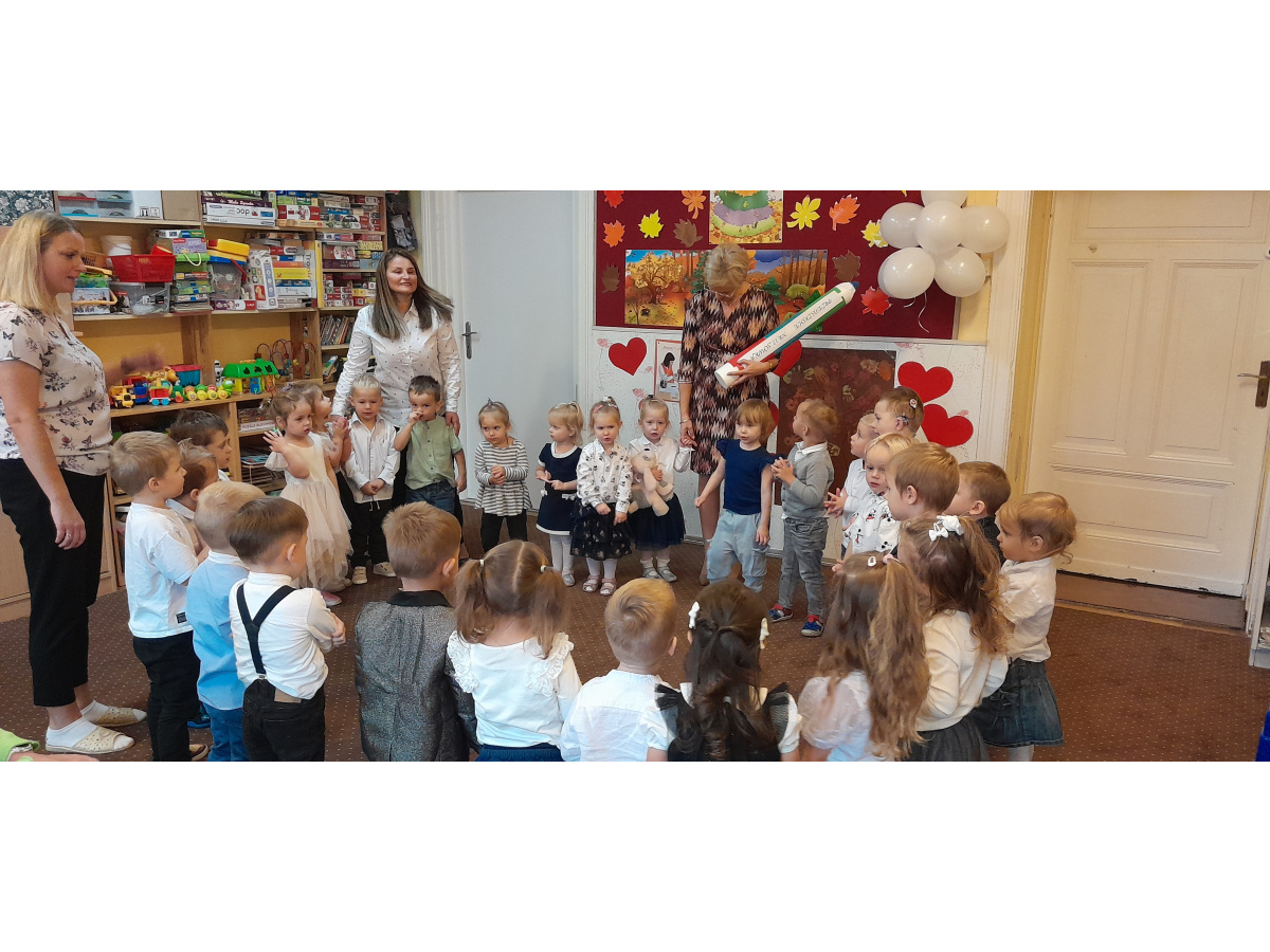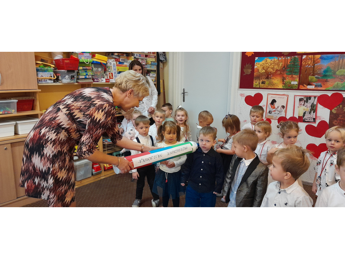 Dnia 14 października 2025 roku, w naszym przedszkolu, odbyło się uroczyste Pasowanie na Przedszkolaka. Po części artystycznej, na której nowoprzyjęte trzylatkii z grupy Promyczki i Sówki przygotowały piosenkę i wiersz, nastąpił ten wyjątkowy jakże piękny moment, pasowanie. Zaszczyciła nas swoją obecnością pani dyrektor Anna Jacek- Szabela, która dotykając ramienia każdego malucha czarodziejską kredką, pasowała go na Sówkowego przedszkolaka. Na pamiątkę tego wydarzenia, każdy maluch otrzymał pamiątkowy dyplom i drobny upominek. Gratulujemy naszym wspaniałym przedszkolakom! Cieszymy się, że jesteście z nami:)))