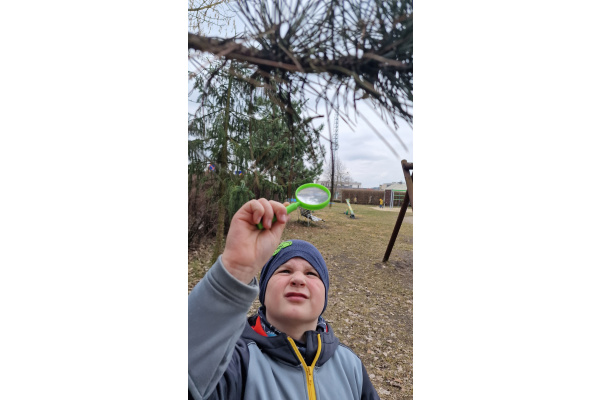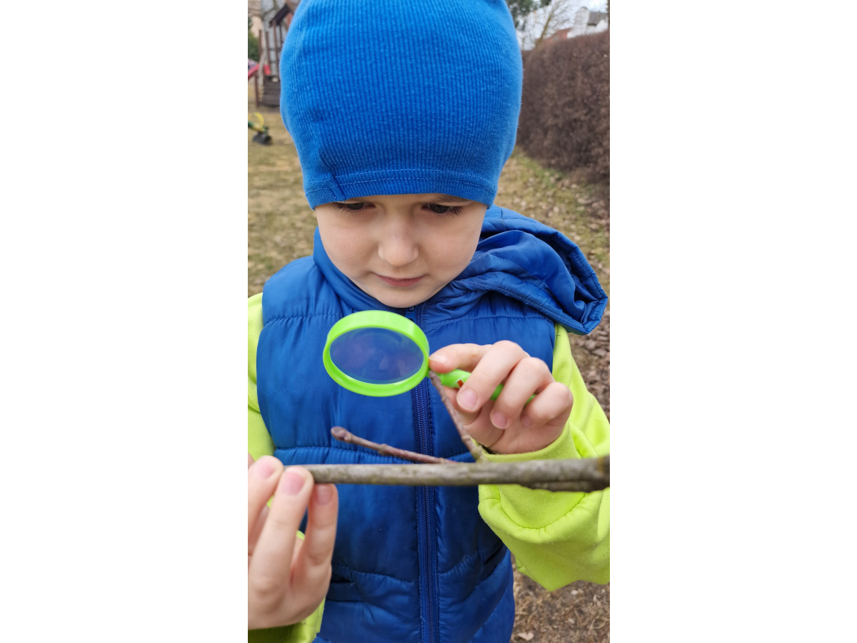 Czekaliśmy na nią długo, ale już jest: "Witaj wiosno!" Powitaliśmy wiosnę na różne sposoby: śpiewem, spacerami i poszukując jej w przyrodzie z użyciem lupy.