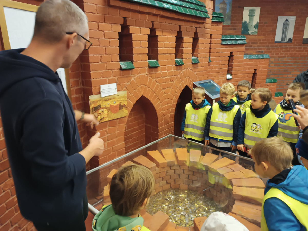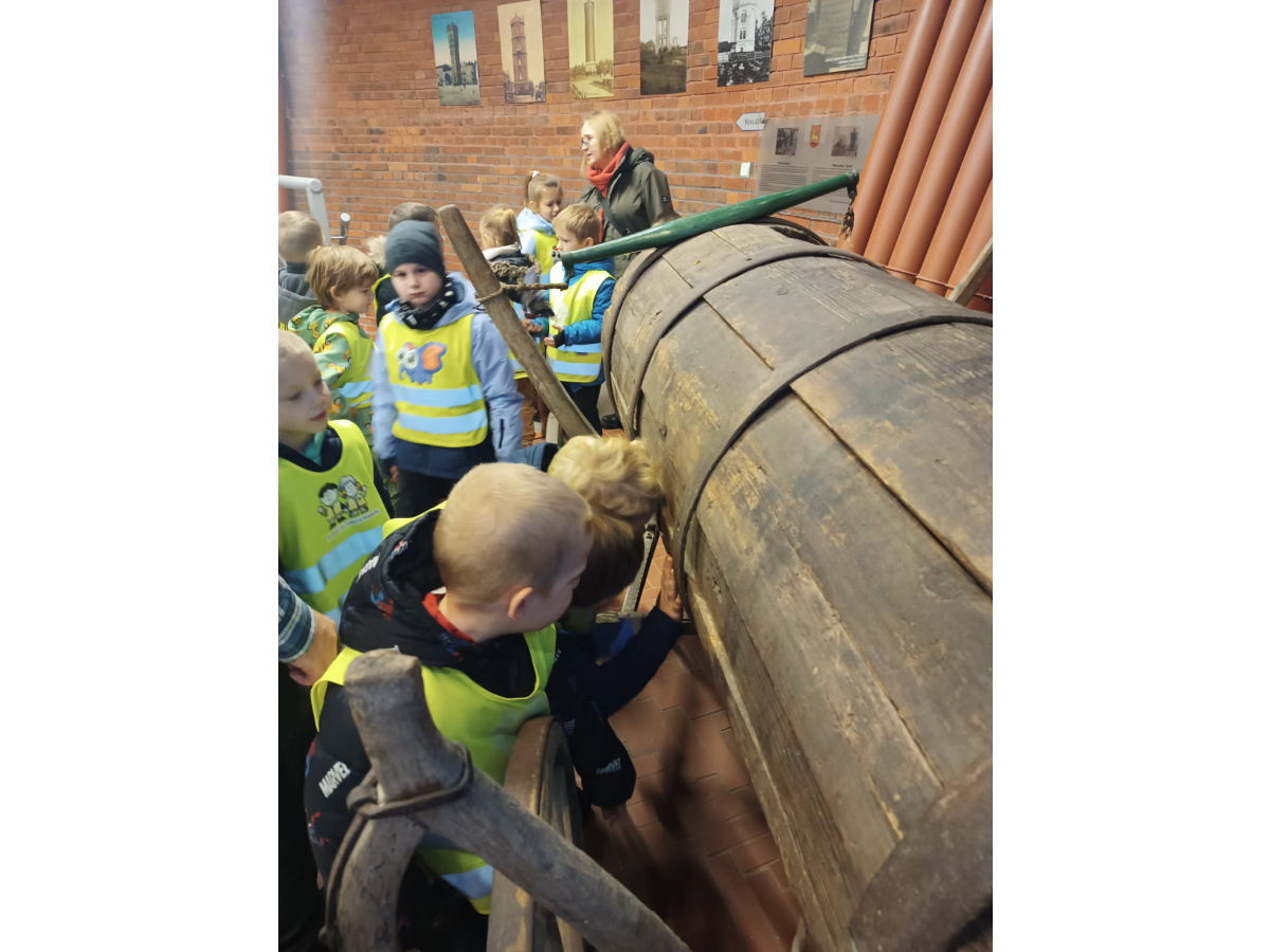 Dnia 14 listopada br. dzieci z grupy "Motylki", w ramach omawianej tematyki, udały się na wycieczkę do Muzeum Wodociągów Wieży Ciśnień w Bydgoszczy. Przedszkolaki poznały sposoby dostarczania i rozprowadzania wody w naszym mieście od starożytności po czasy współczesne. Wiele emocji wzbudziło oglądanie eksponatów z dawnych lat oraz podziwianie panoramy miasta z tarasu widokowego.